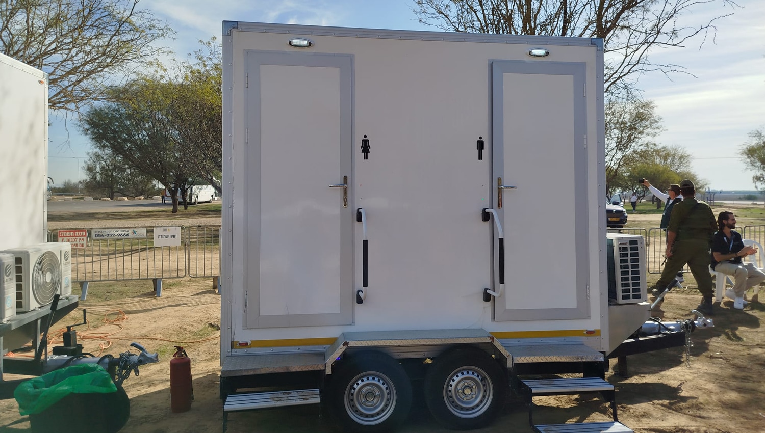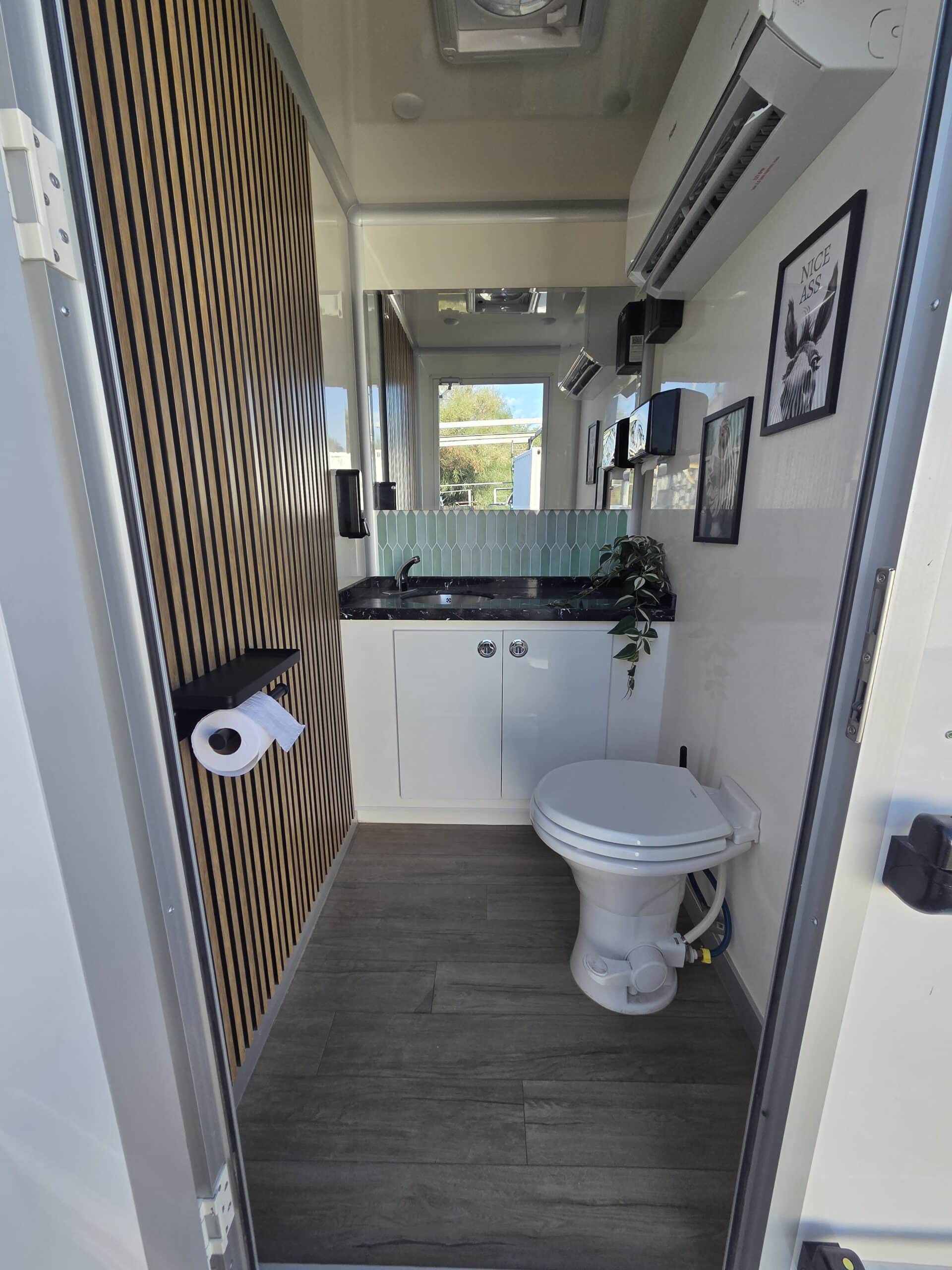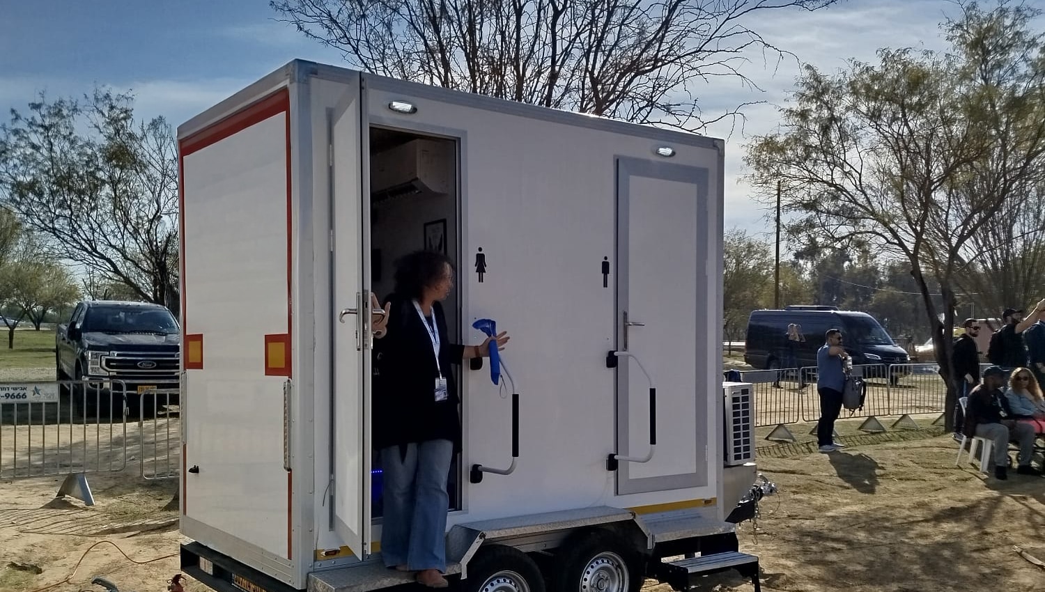 קרון השירותים דגם ארי מציע פתרון אלגנטי ומתקדם למי שמחפש שירותים ניידים שאינם מתפשרים על איכות. הקרון כולל שני תאים נפרדים המאובזרים בטכנולוגיה מתקדמת, עיצוב פנים יוקרתי ושימוש בחומרים איכותיים בלבד.